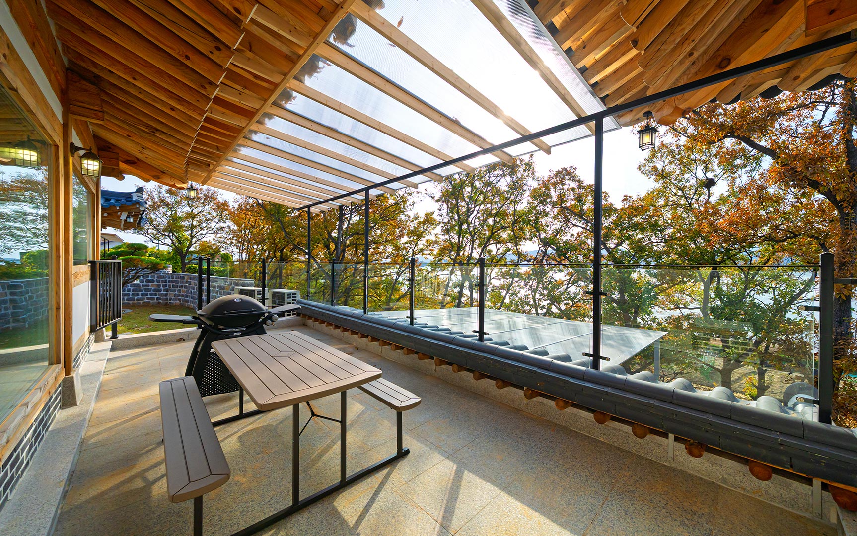 테라스에서 아름다운 덕포진 노을을 감상하며 소중한 사람들과 맛있는 바비큐 파티를 즐기세요.