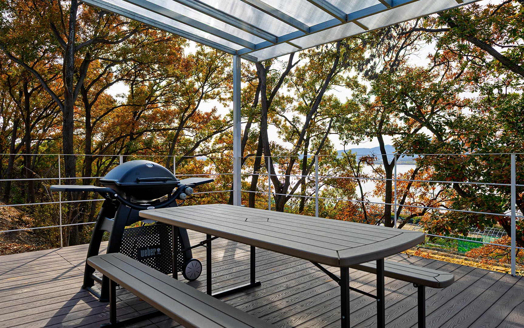 테라스에서 아름다운 덕포진 노을을 감상하며 소중한 사람들과 맛있는 바비큐 파티를 즐기세요.