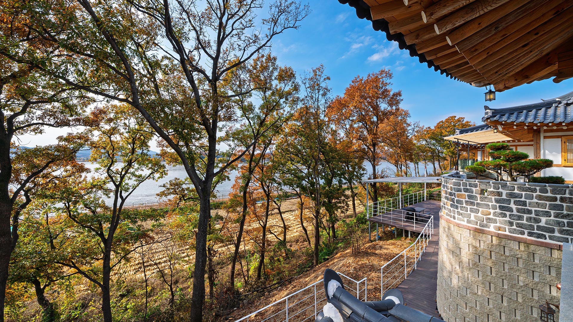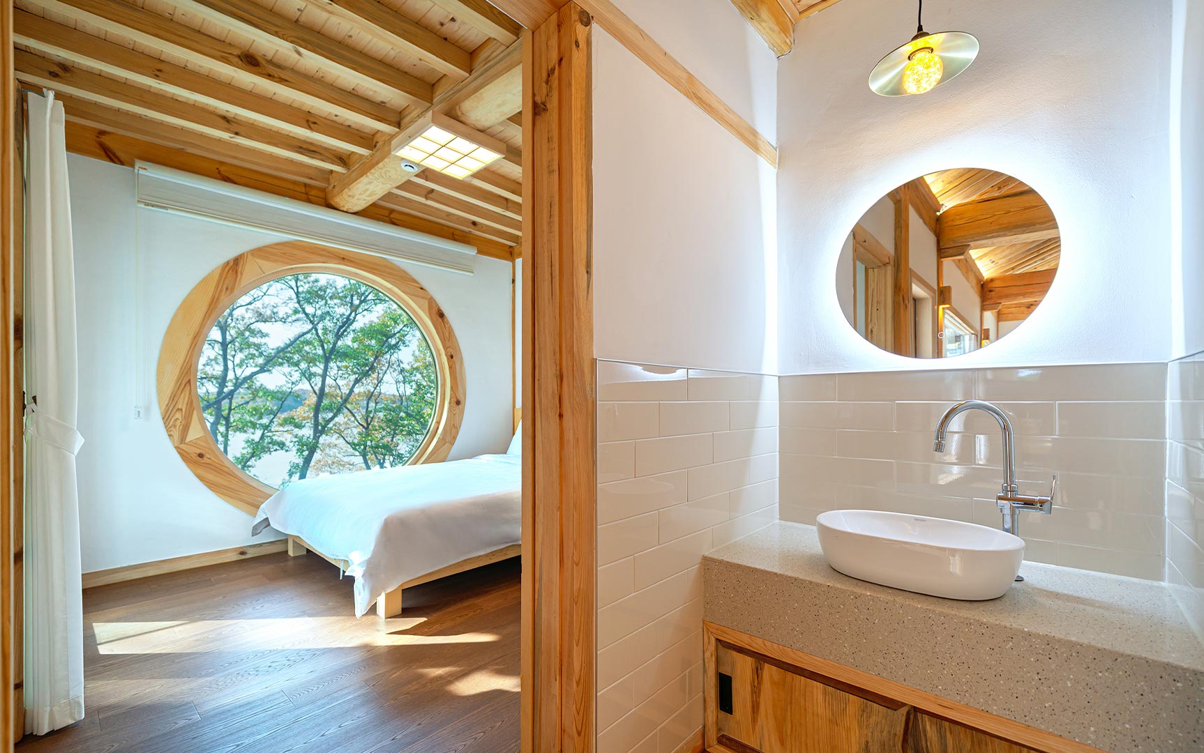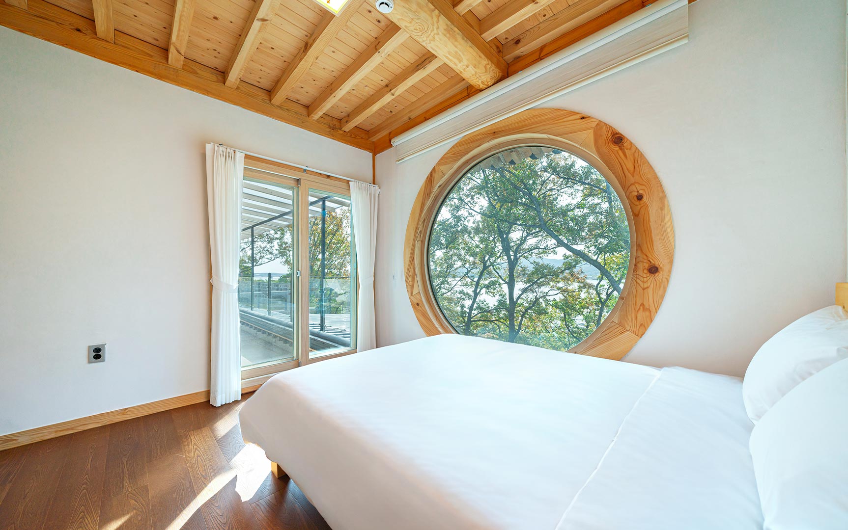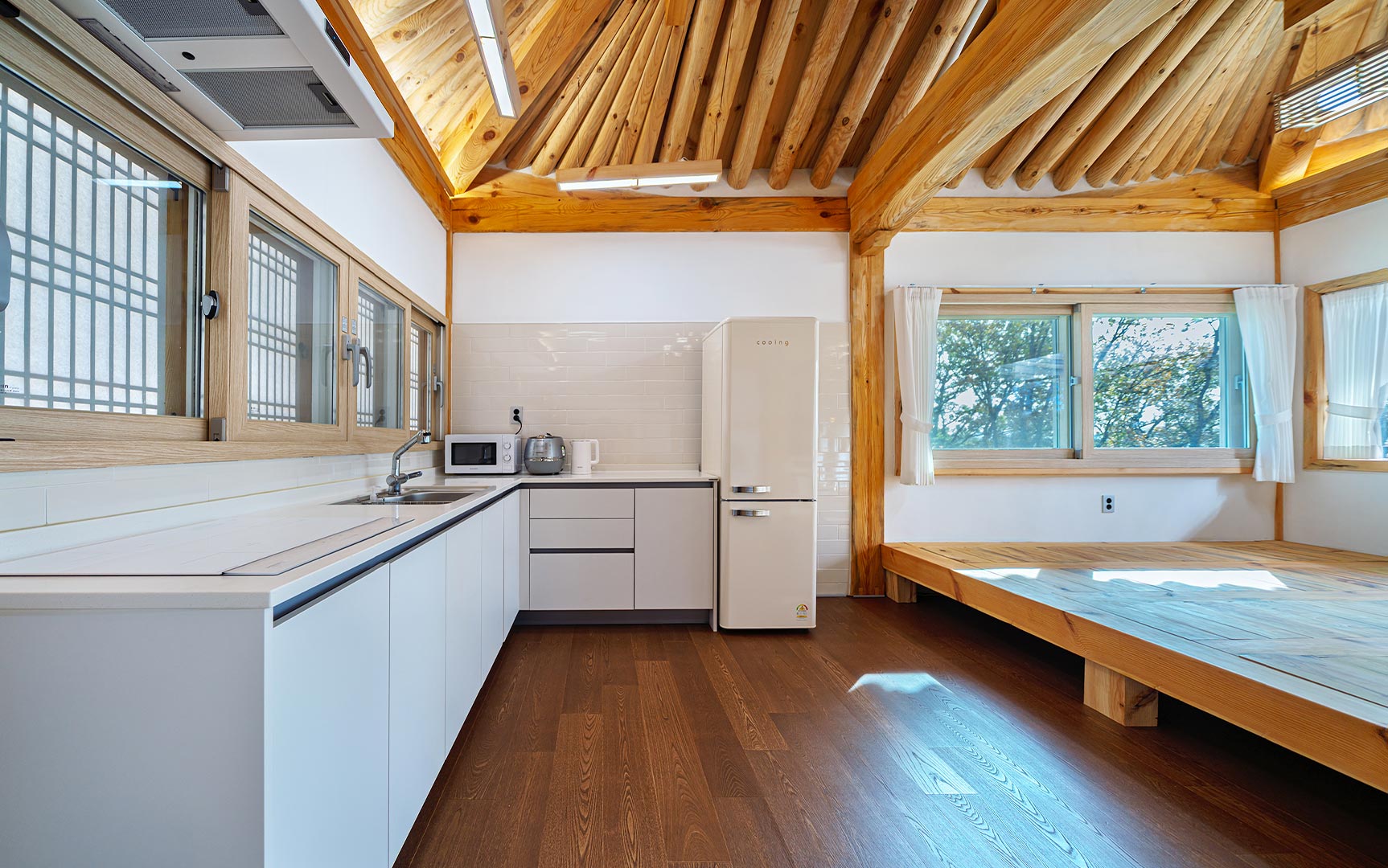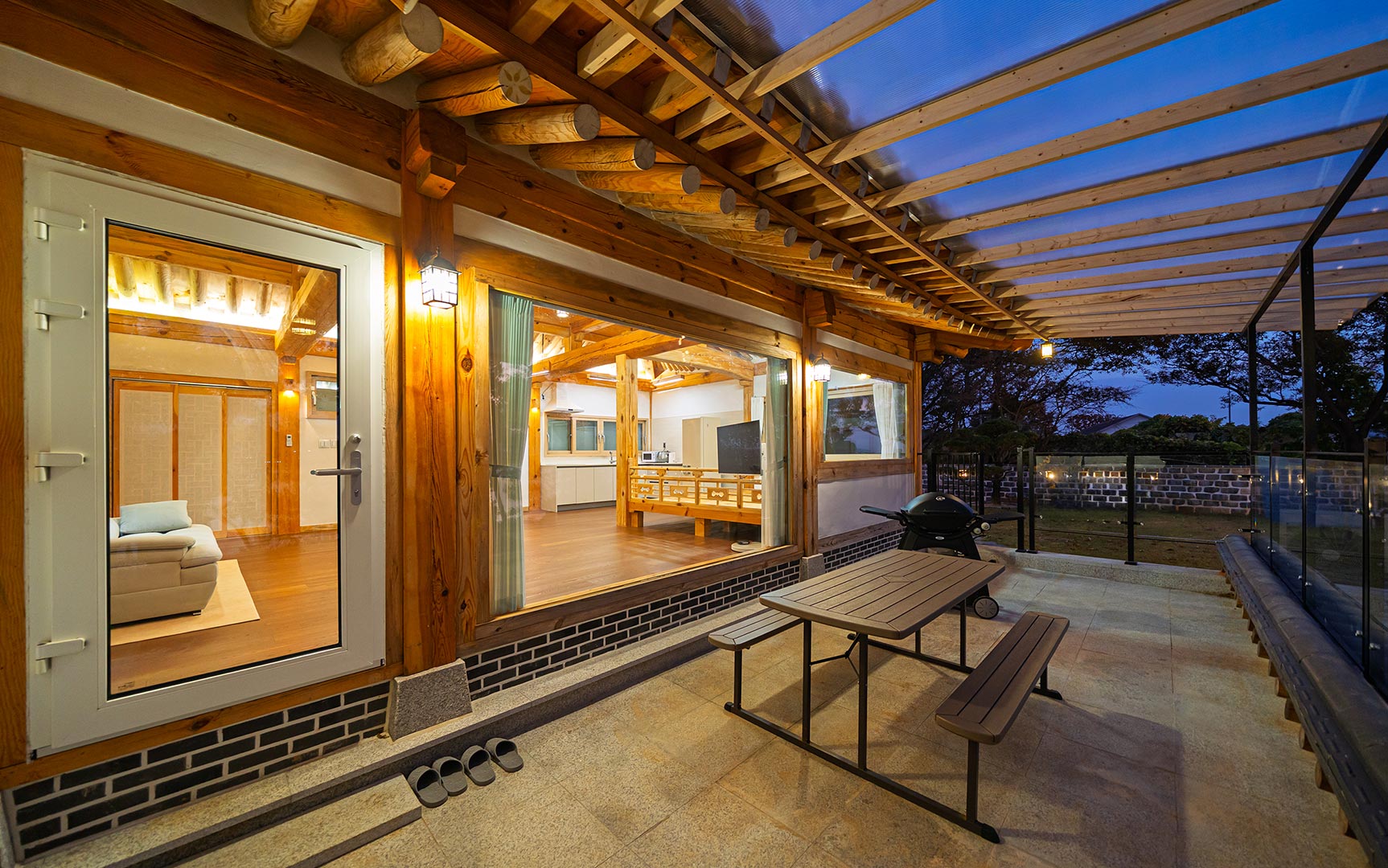 실내 대청마루가 있는 전통과 자연이 어우러진 공간 고즈넉한 전통의 멋과 편안한 휴식을 즐겨보세요.